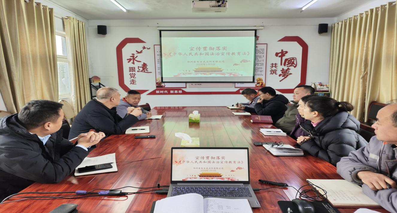 2026年1月5日,郑州新登玄武纤维科技有限公司召开"法治宣传教育法"动员会议,筹划安排部署"法治宣传教育法"的宣传活动工作,明确活动的目的,突出宣传的实效性和思想性。通过分层分类精准学、以案释法实践学,来健全风险防控体系、强化合规经营实践、提升全员用法能力。